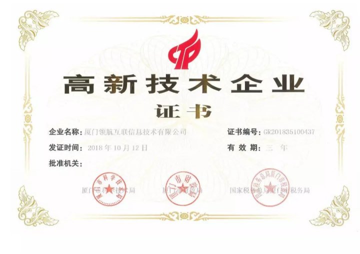 作为智慧物业解决方案引领者,领航互联凭借十余年来在物业行业积淀的技术实力、专业的研发团队、持续的创新能力以及科学的企业管理,通过层层审查,荣获“高新技术企业”称号,这标志着领航互联正式迈入国家高新技术企业行列,也意味着领航互联技术实力已经迈向一个更高的台阶。这不仅是一种荣誉,更是一种责任,我们将以此为激励,为广大用户提供最智能的物业收费管理平台,为打造新型智慧社区而不懈努力!