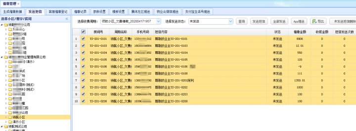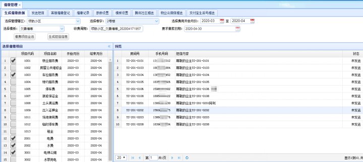 ⑤短信功能只需要后台有业主的手机号码就行,物业后续可以补录手机号码。