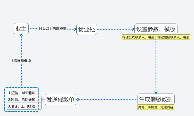 4.人工客服:针对短信、App催缴无效的用户采取电话、通知单或上门等形式进行再次催缴工作,进一步提高缴交物业费的效率。同时做好催缴记录,以便日后追溯查询。