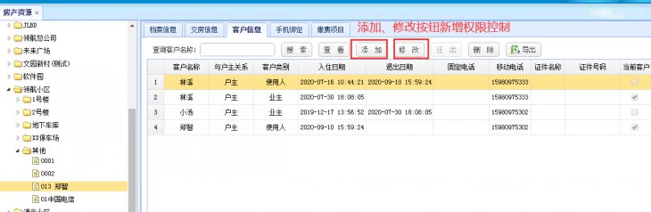 3、房产资源——客户信息——添加、修改功能-增加权限