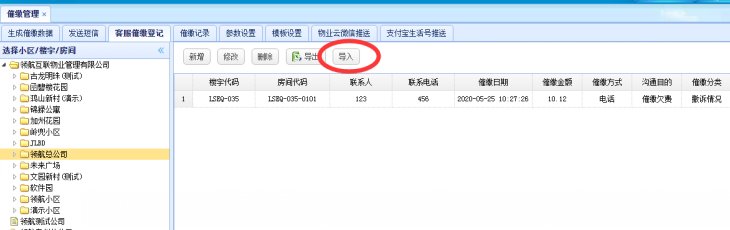 5、客服催缴登记——新增【导入】功能;