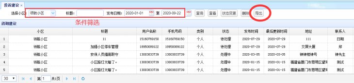 ②投诉建议新增【导出】功能;