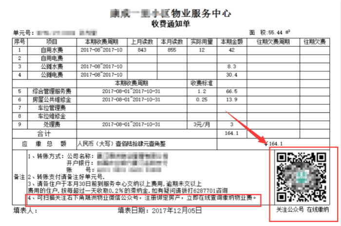 同时,领航互联对传统通知单模式进行创新,已开通微信公众号的物业公司在通知单里可以加上缴费二维码,让业户轻松实现在家缴费的便利。