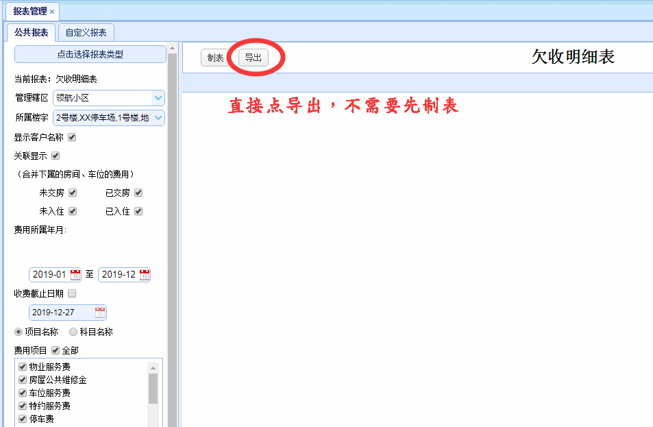 为了提高报表制表效率,在选择好报表类型与导出时间段条件后,无需点击制表按钮,而是直接点【导出】按钮即可。尤其是数据量大时,直接导出的速度将会大大提高。