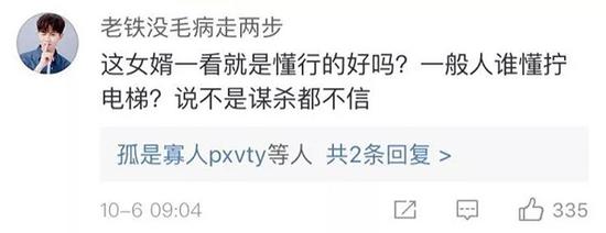这一视频在网上流传以后,很多网友都留言称不明白为什么女婿会有电梯钥匙打开电梯门,甚至对老人的死因也存有质疑