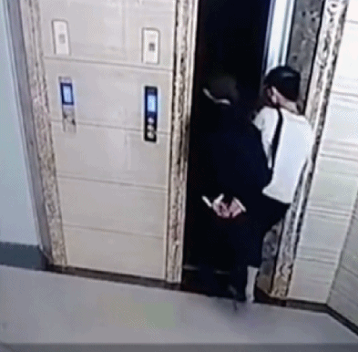 从视频中可以看到,电梯门打开后,周先生的岳父探头观察了一番便往里走去。随后,老人整个身体直接坠了下去……