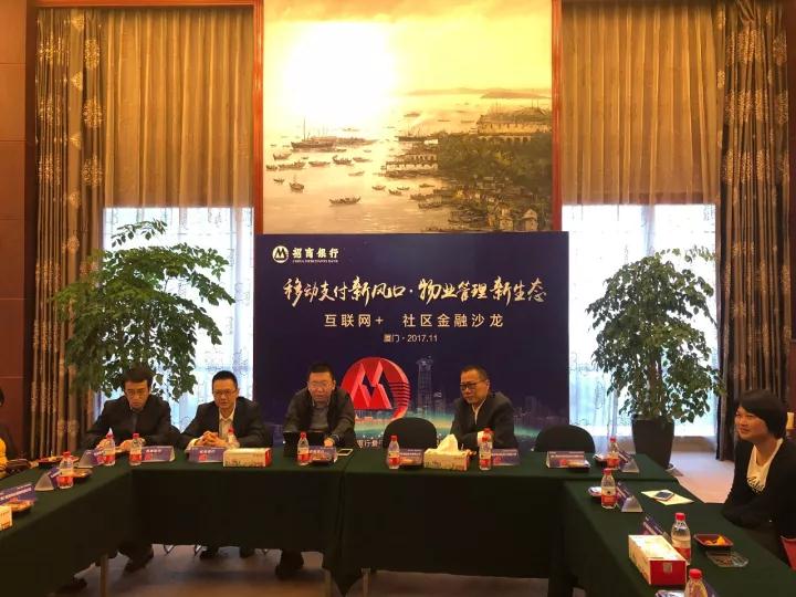 2017年11月23日下午,招商银行厦门分行联合厦门领航互联信息技术有限公司,在宏泰中心六楼举办主题为“移动支付新风口,物业管理新生态”互联网+社区金融沙龙。厦门10余家知名物业管理公司高管参会。厦门领航互联信息技术有限公司总经理储金杰出席了此次沙龙。沙龙由招商银行厦门分行交易银行部副总经理张争光主持。